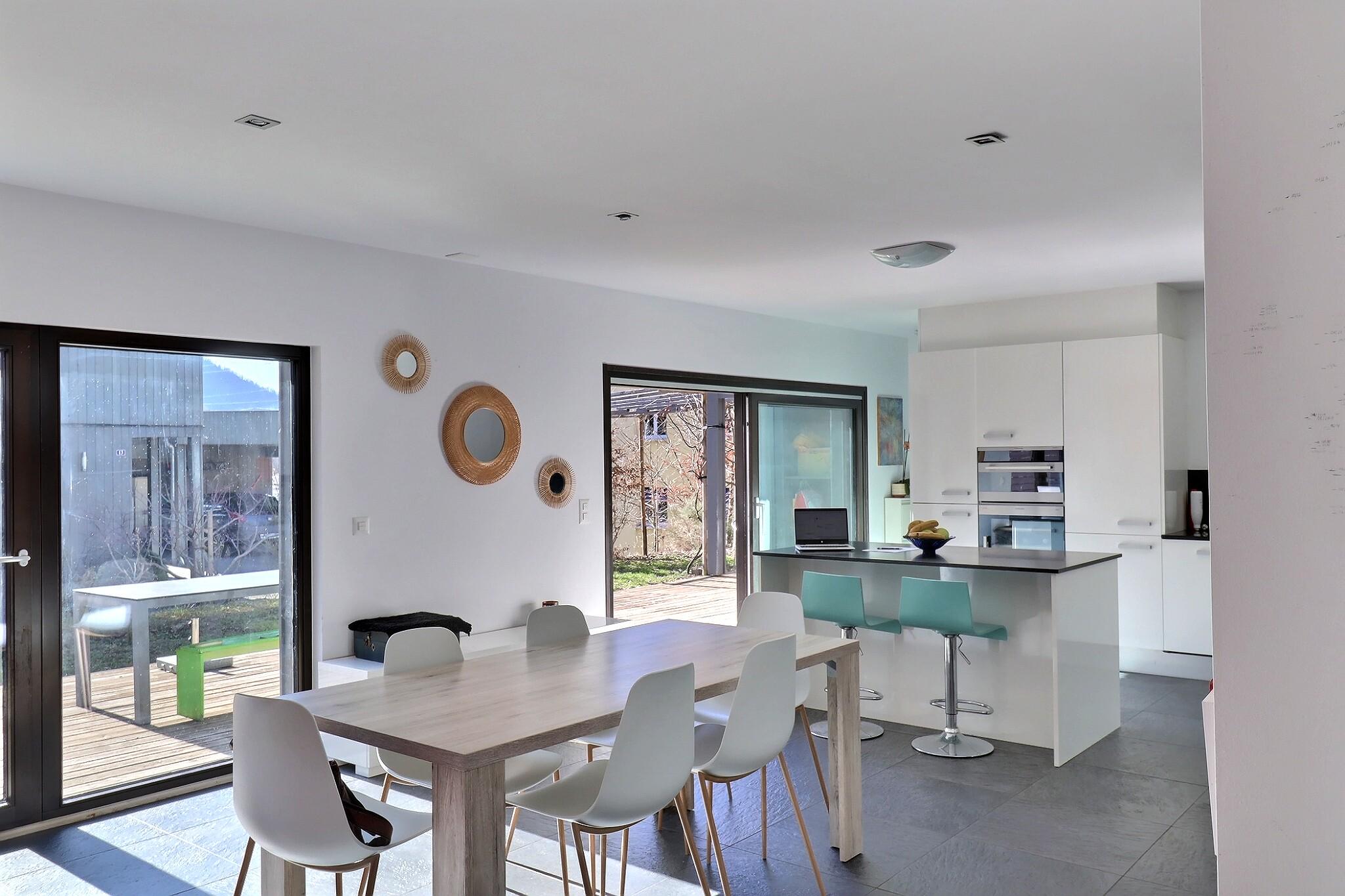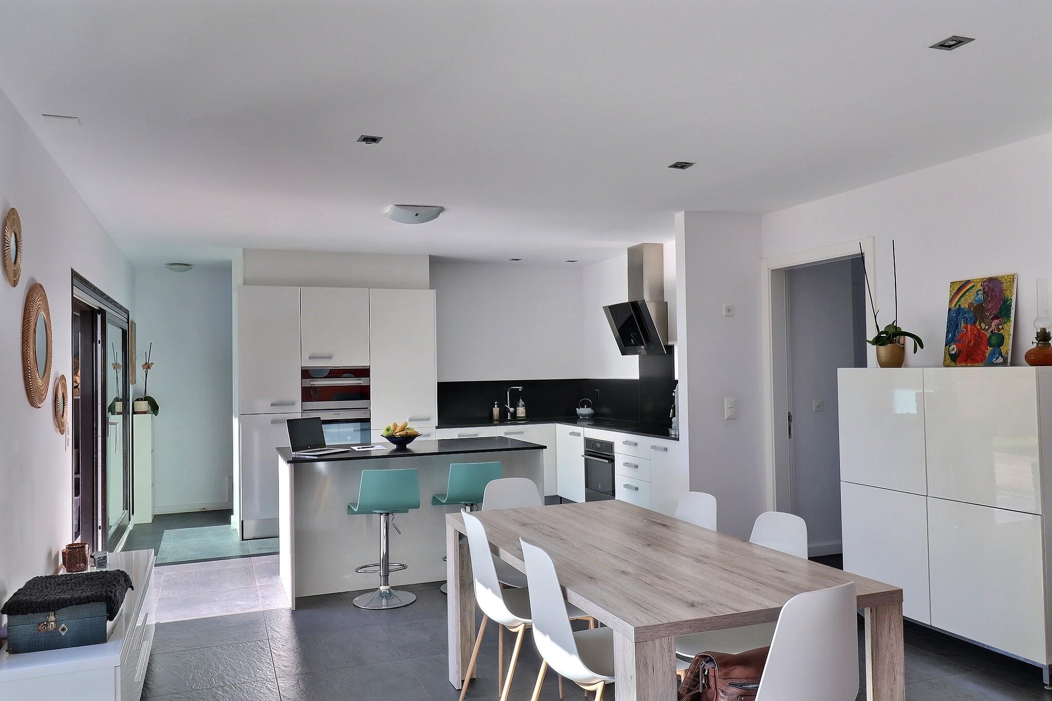 - Superbe espace de vie de plus de 60 m² comprenant cuisine ouverte, salle à manger et salon
